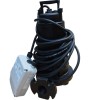 Pumpenanwendung: Tauchpumpen der Grix-Serie haben einen eingebauten Zerhacker am Einlass. Dadurch werden Feststoffpartikel im Abwasser zerstört, wodurch sie durch relativ enge, oft vorhandene Rohre transportiert werden können. Einsatzgebiete: Häusliches Abwasser, Flüssigkeiten mit Schwebstoffen, wenn hoher Druck (Hm) erforderlich ist. Merkmal: Die Hauptkomponenten bestehen aus Gusseisen. Die GG20-Konfiguration hat eine auf der Motorseite montierte Hülsendichtung und eine Gleitringdichtung in der Ölkammer auf der Laufradseite. Motorenprogramm: Motor mit kurzgeschlossenem Läufer in 2-poliger Ausführung; tWärmeschutz in der Wicklung integriert; Isolierstoffklasse F 155 °C; Schutzart des IP68-Motors. Motorkühlung: Die Motorkühlung erfolgt durch die Flüssigkeit, in die die Pumpe eingetaucht ist. Einsatzgrenzen: maximal zulässige Flüssigkeitstemperatur: 40 °C bei vollständig eingetauchter Pumpe; maximale Eintauchtiefe: 20 m; zulässiger pH-Wert: 6-10; hydraulische Eigenschaften geeignet für Flüssigkeiten mit einer Dichte von <1,1 kg / dm3; zulässige Spannung: 220V / 380V ± 5%; zulässige Frequenz: 50 Hz ± 2 %. Zeichenerklärung: G-Float M-1 Phase 220V T-3 Phase 380V M / G-einphasig mit Schwimmersensor T / G - dreiphasig mit Schwimmersensor 2850 vol.- 2 Pole 50 Hz Horizontaler Druckstutzen